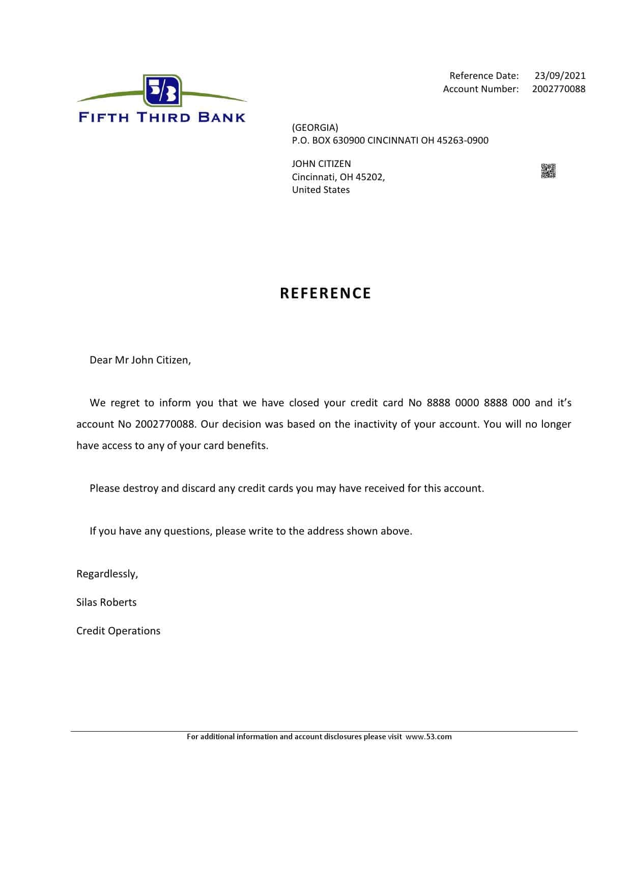 Download USA Fifth Third Bank Reference Letter Templates | Editable Word