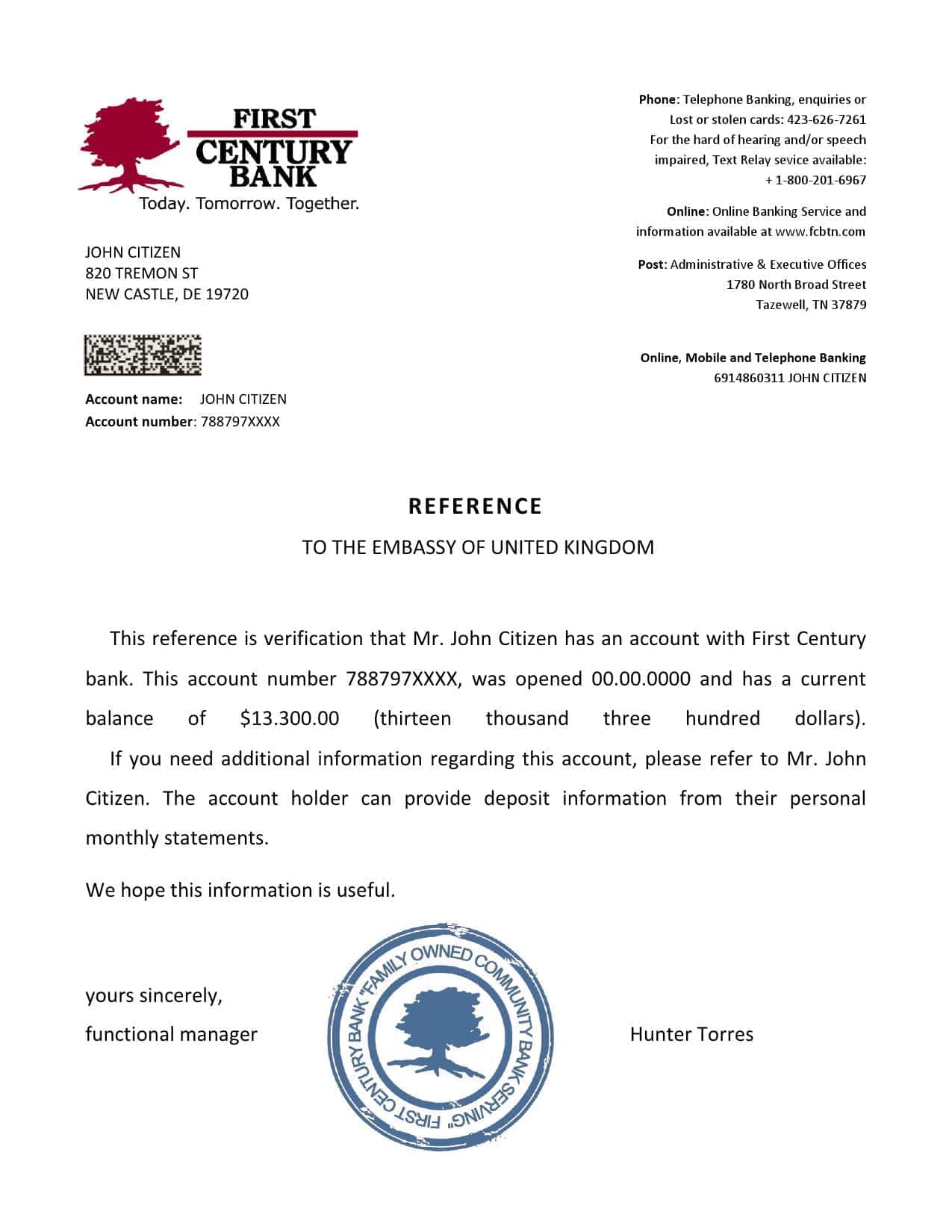Benefits of Using Editable USA First Century Bank Reference Letter