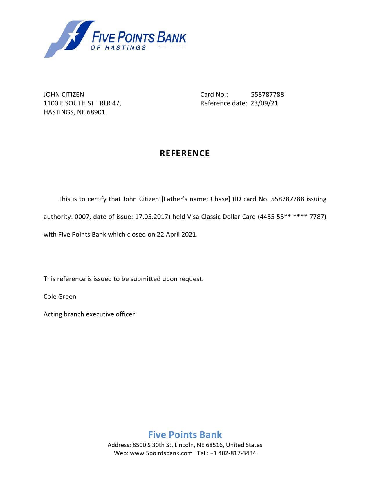 Download USA Five Points Bank Reference Letter Templates | Editable Word