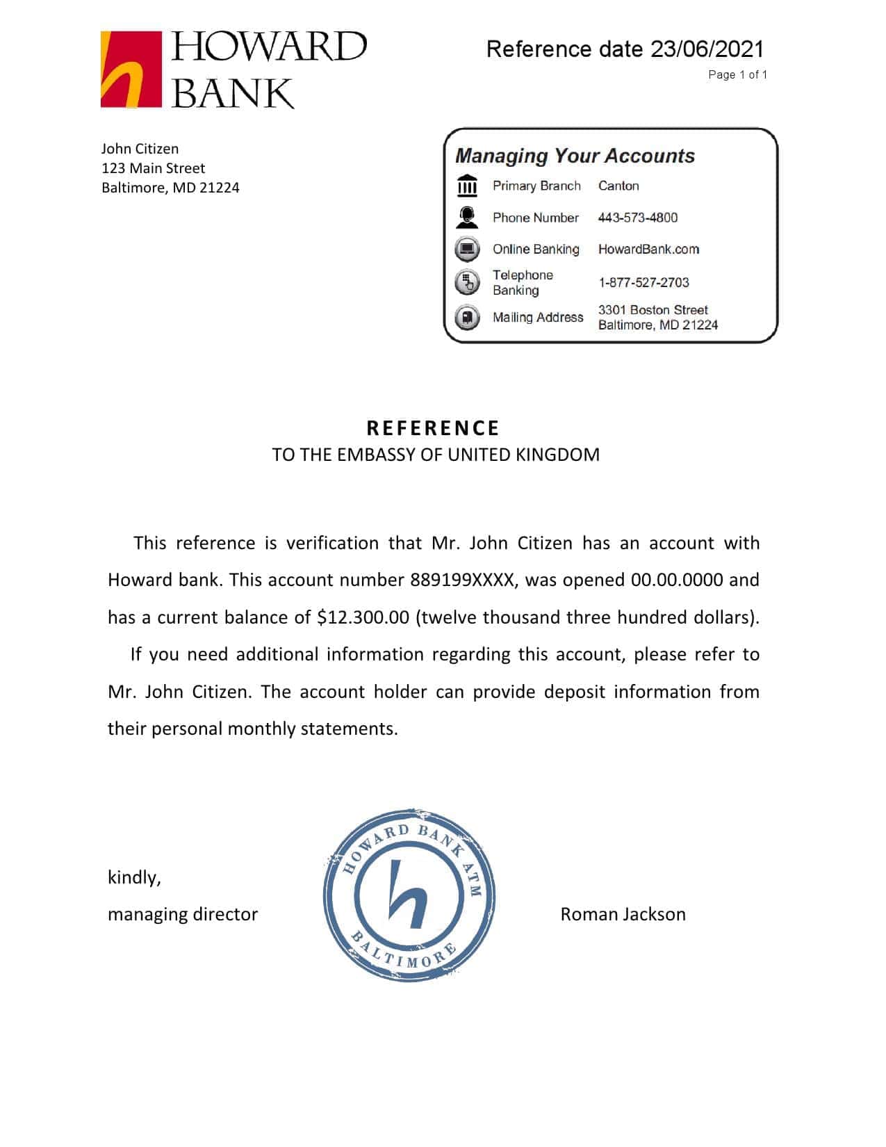 Benefits of Using Editable USA Howard Bank Reference Letter
