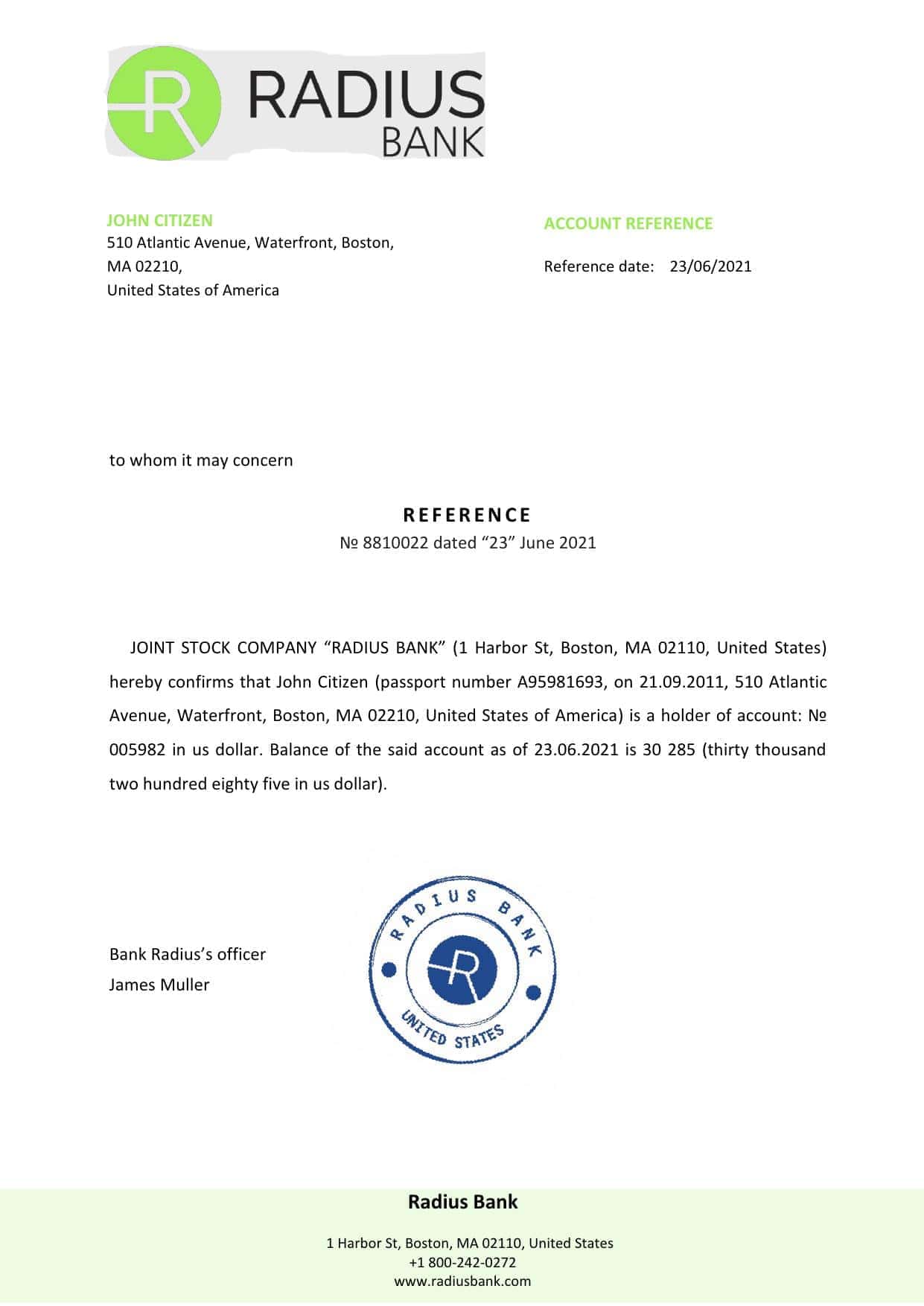 Download USA Radius Bank Reference Letter Templates | Editable Word