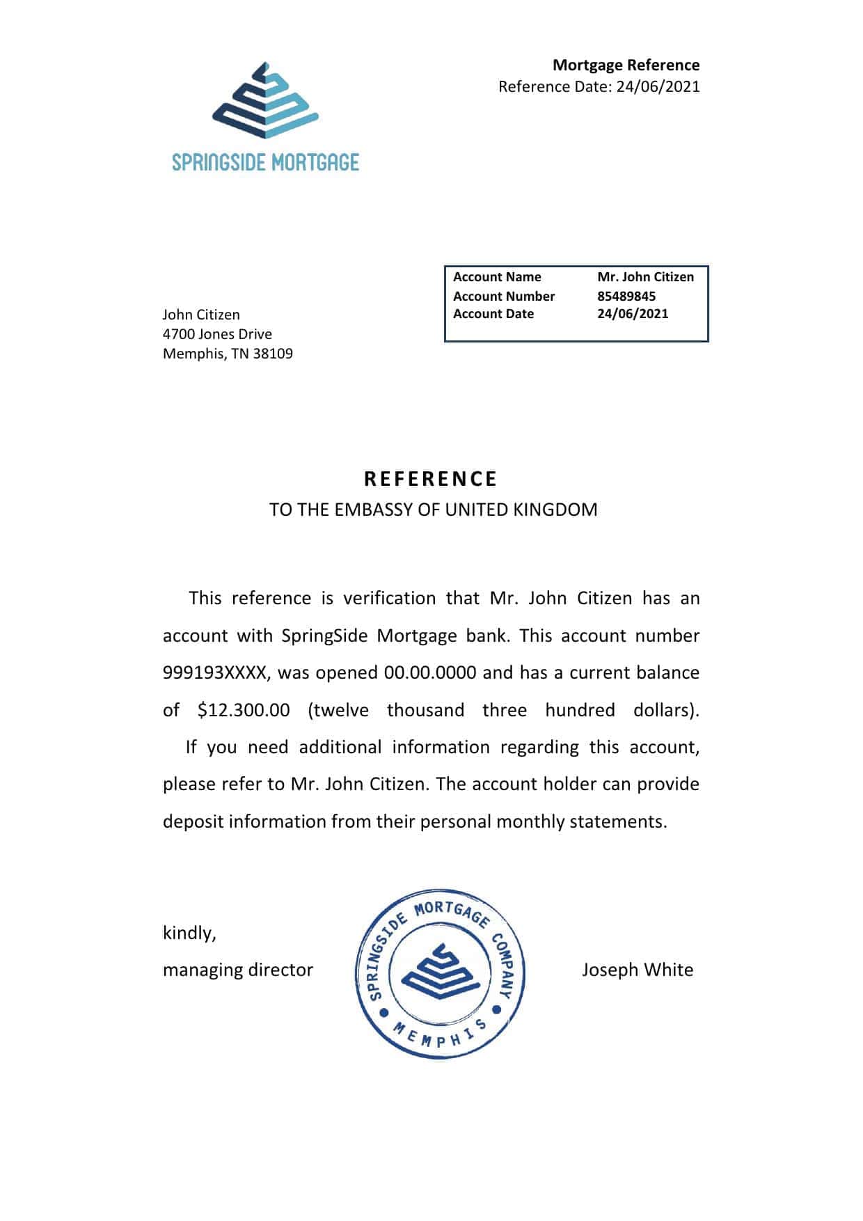Download USA Springside Mortgage Bank Reference Letter Templates | Editable Word