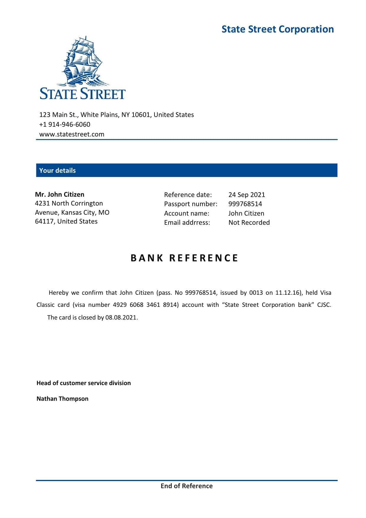 Download USA State Street Bank Reference Letter Templates | Editable Word