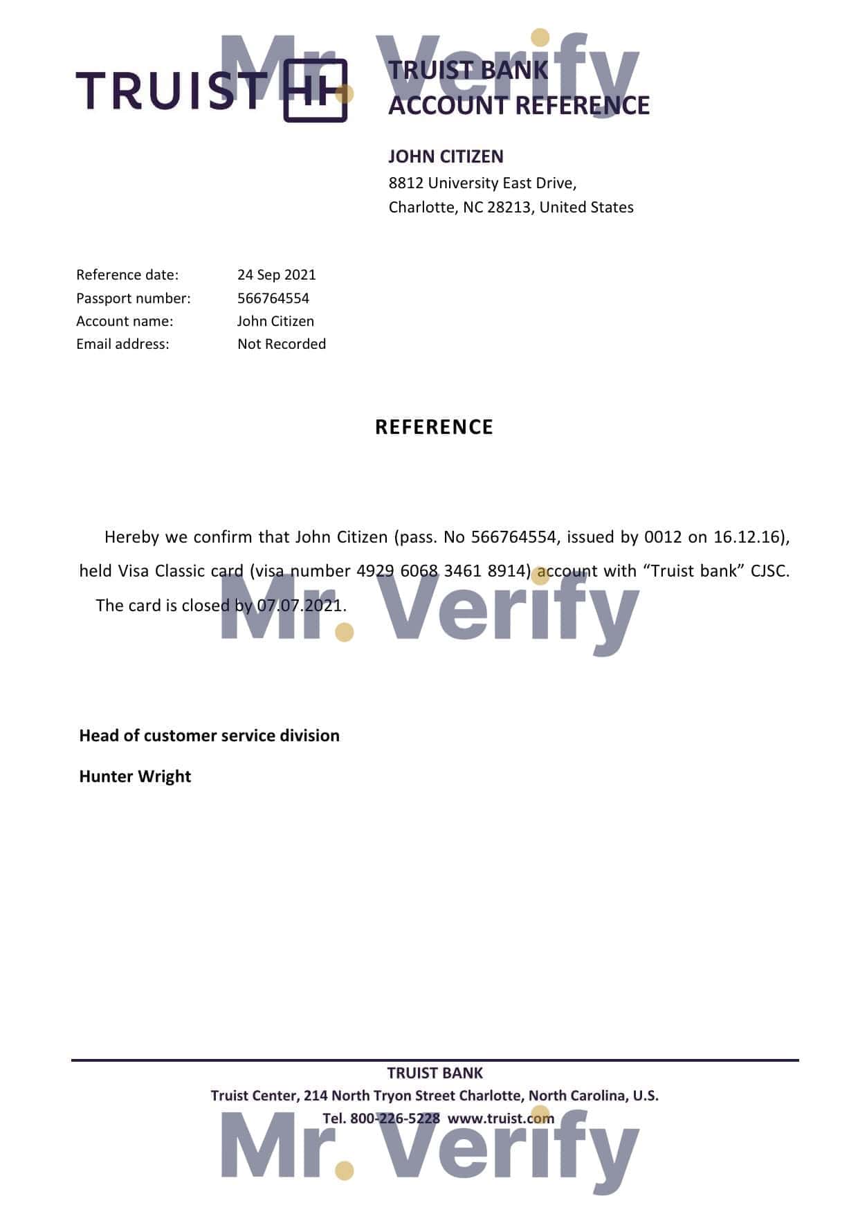 Download USA Truist Bank Reference Letter Templates | Editable Word