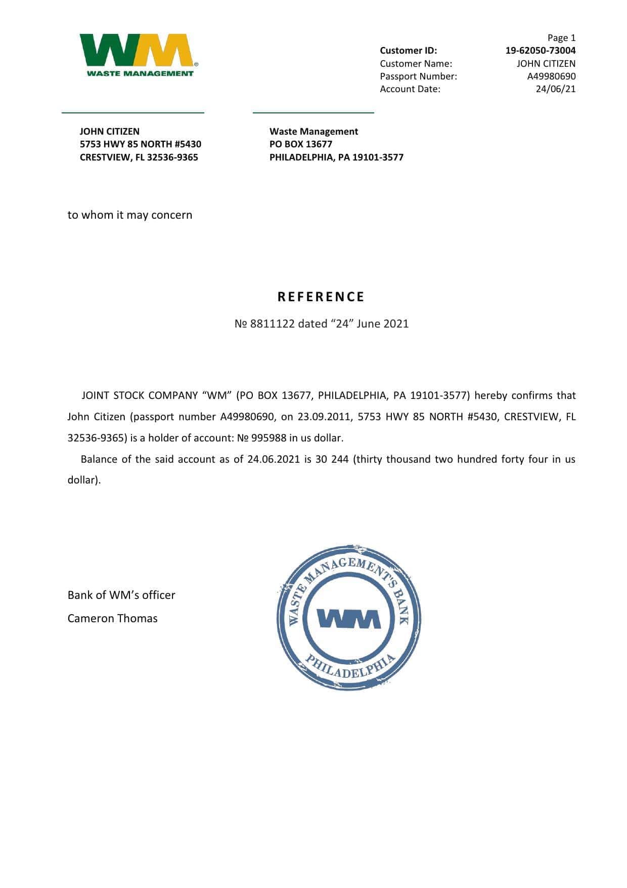 Download USA WM Bank Reference Letter Templates | Editable Word