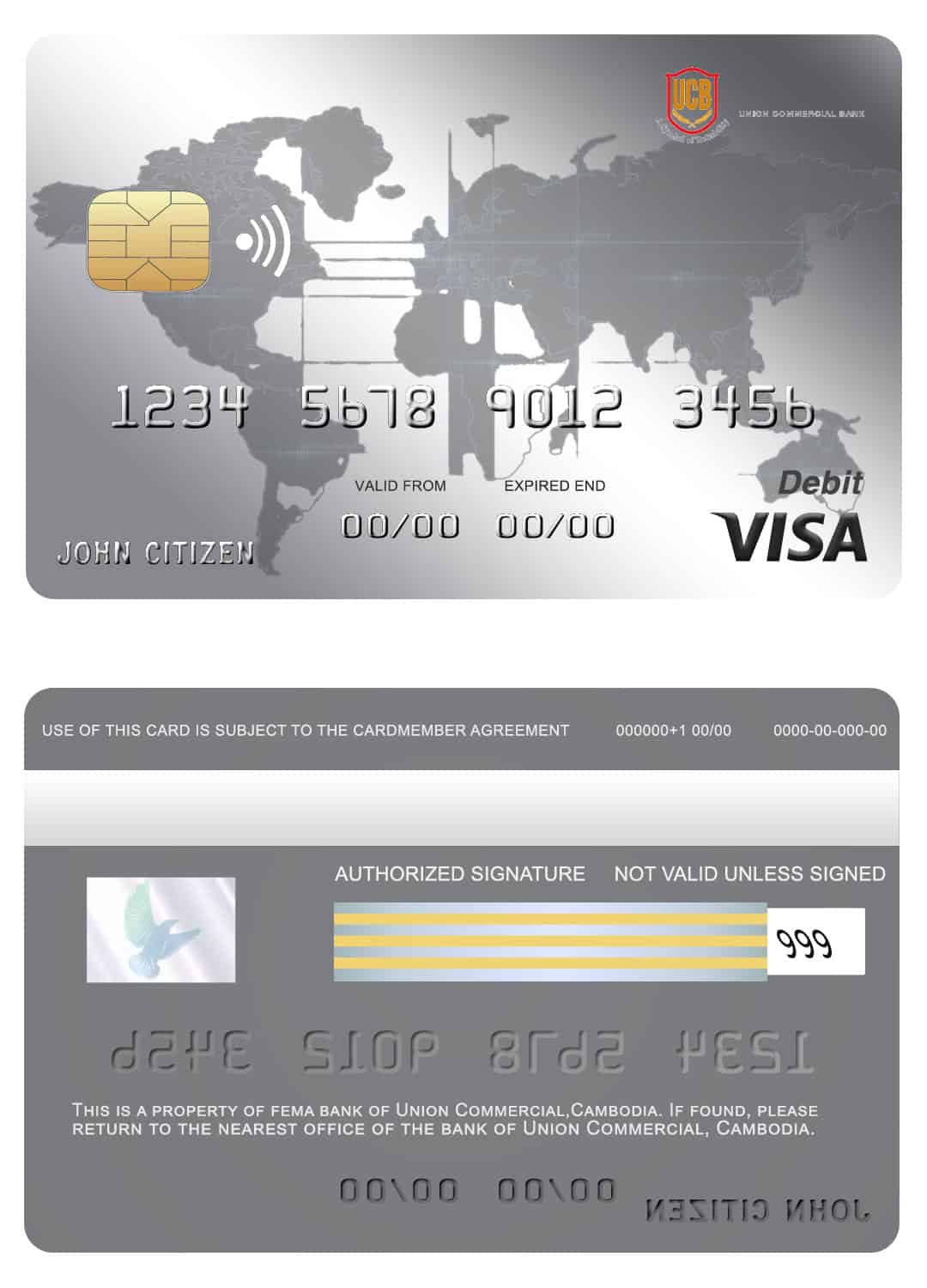 Do you want to use a fillable visa credit card that truly reflects your authority and is realistic? Look no further! Our customizable Cambodia Union Commercial bank visa credit card templates in PSD format are the perfect solution.