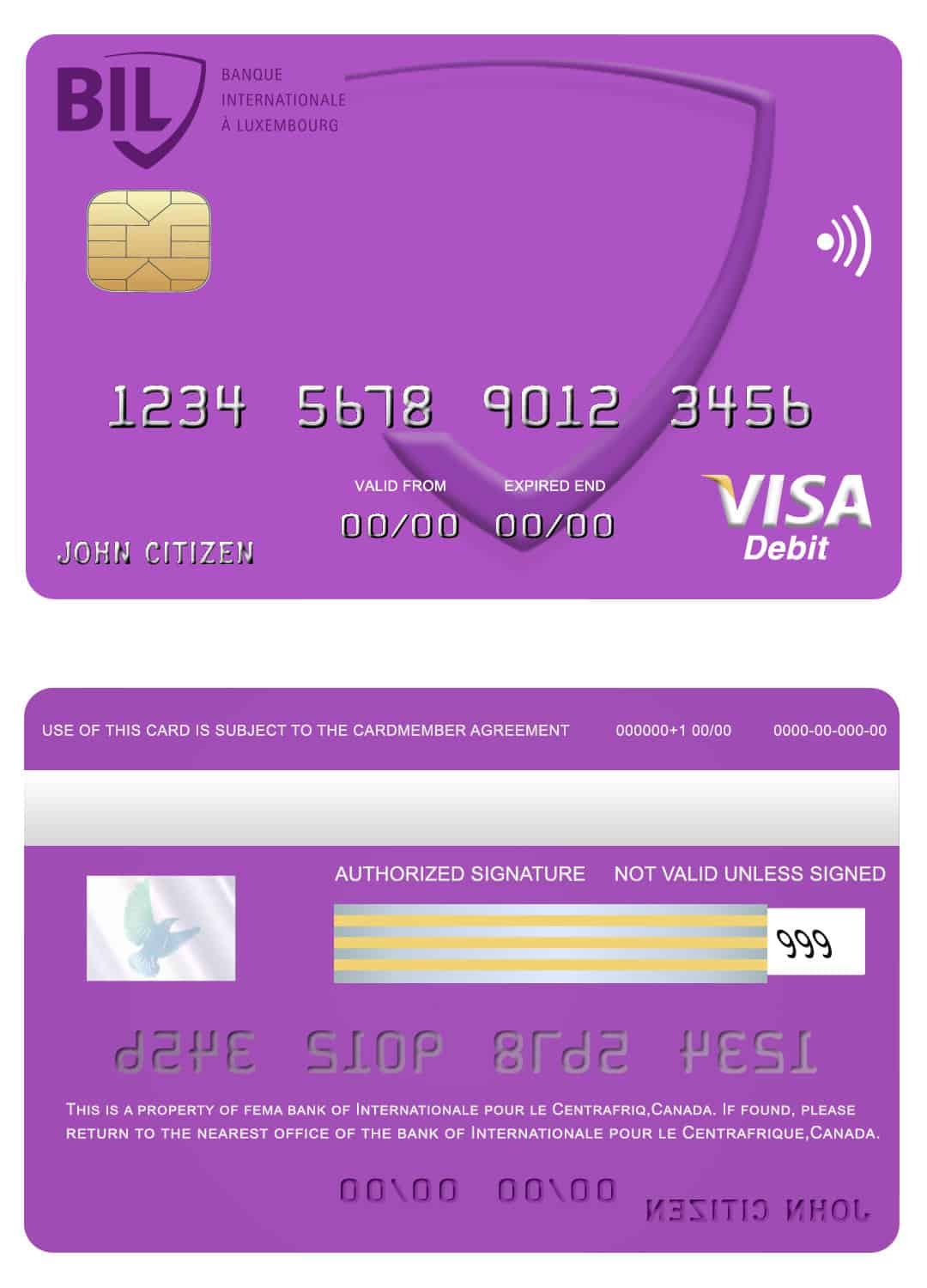Our editable Canada Internationale pour le Centrafrique bank visa card templates offer several benefits: