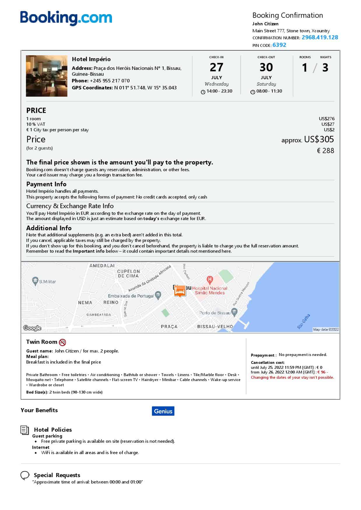 Are you in need of a hotel or Airbnb booking confirmation for your needs? Look no further! Mr. Verify’s editable templates are perfect for providing proof of accommodation and showing expenses, making the fake booking process even more authentic and reliable. Our templates come in both Word and PDF formats, and are available for almost all countries. With our Guinea-Bissau country name fillable booking form templates, you can easily customize your booking confirmation to fit your specific needs, saving you time and hassle. And if you need any help with editing or construction works, our specialists are ready to assist you at affordable prices. Our support team is also available online to answer any questions you may have.