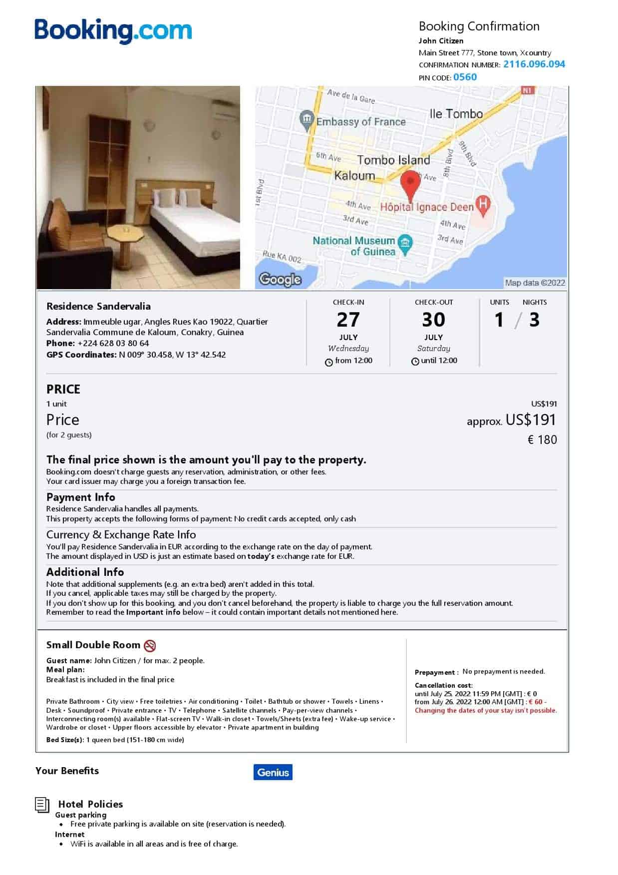 Are you in need of a hotel or Airbnb booking confirmation for your needs? Look no further! Mr. Verify’s editable templates are perfect for providing proof of accommodation and showing expenses, making the fake booking process even more authentic and reliable. Our templates come in both Word and PDF formats, and are available for almost all countries. With our Guinea country name fillable booking form templates, you can easily customize your booking confirmation to fit your specific needs, saving you time and hassle. And if you need any help with editing or construction works, our specialists are ready to assist you at affordable prices. Our support team is also available online to answer any questions you may have.