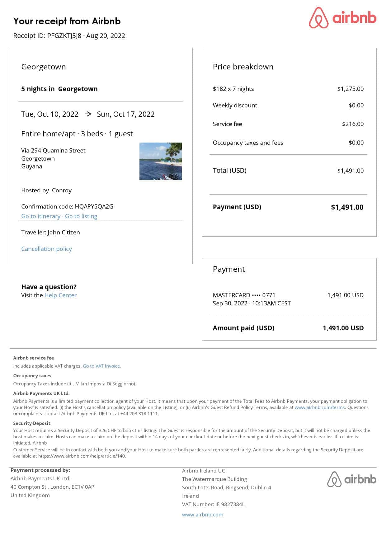 Are you in need of a hotel or Airbnb booking confirmation for your needs? Look no further! Mr. Verify’s editable templates are perfect for providing proof of accommodation and showing expenses, making the fake booking process even more authentic and reliable. Our templates come in both Word and PDF formats, and are available for almost all countries. With our Guyana countryname fillable booking form templates, you can easily customize your booking confirmation to fit your specific needs, saving you time and hassle. And if you need any help with editing or construction works, our specialists are ready to assist you at affordable prices. Our support team is also available online to answer any questions you may have.