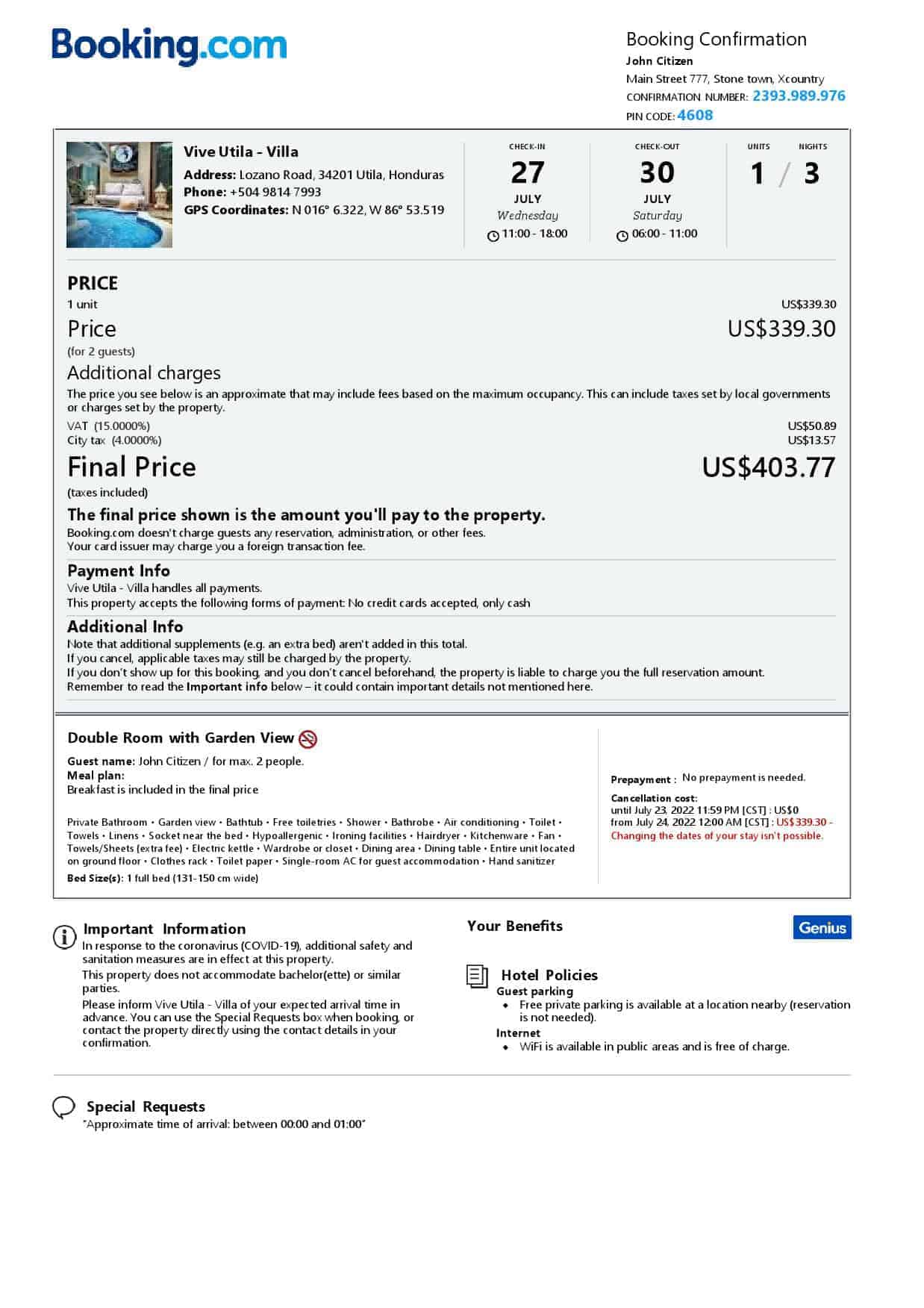 Are you in need of a hotel or Airbnb booking confirmation for your needs? Look no further! Mr. Verify’s editable templates are perfect for providing proof of accommodation and showing expenses, making the fake booking process even more authentic and reliable. Our templates come in both Word and PDF formats, and are available for almost all countries. With our Honduras country name fillable booking form templates, you can easily customize your booking confirmation to fit your specific needs, saving you time and hassle. And if you need any help with editing or construction works, our specialists are ready to assist you at affordable prices. Our support team is also available online to answer any questions you may have.