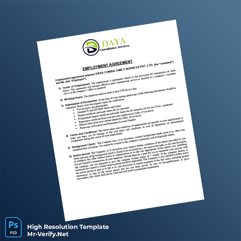 Don’t stress over inaccurate or incomplete employment documents again. The India Daya Consultancy Services Pvt Ltd Offer Letter Word and PDF Template solves common pain points by providing a ready-to-use, easy-to-edit format that enhances productivity and professionalism. Take control of your employment verification process and deliver impeccable documents swiftly and confidently.
