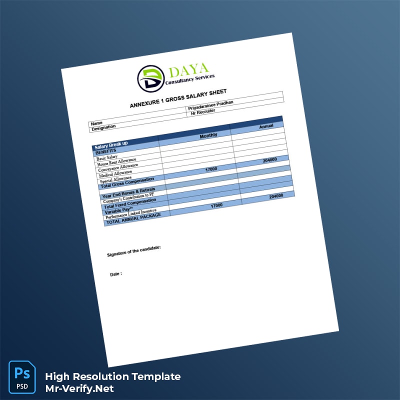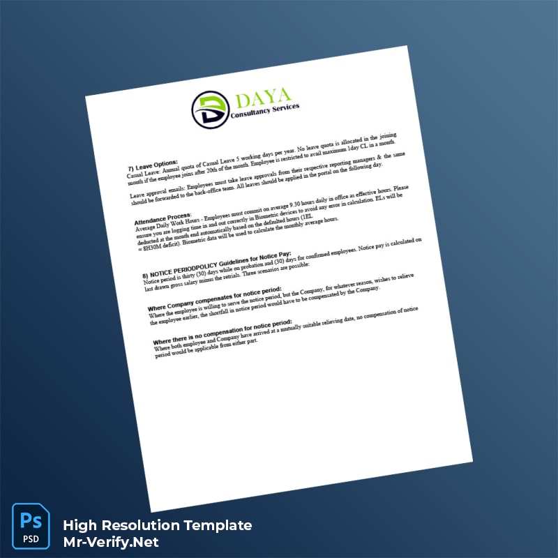 The India Daya Consultancy Services Pvt Ltd Offer Letter Word and PDF Template offers an expertly designed and editable solution for professionals seeking to generate accurate and professional employment verification letters effortlessly. This template caters to HR specialists, recruitment agencies, and individual employers who require a reliable and customizable certificate of employment template that saves time and ensures compliance.