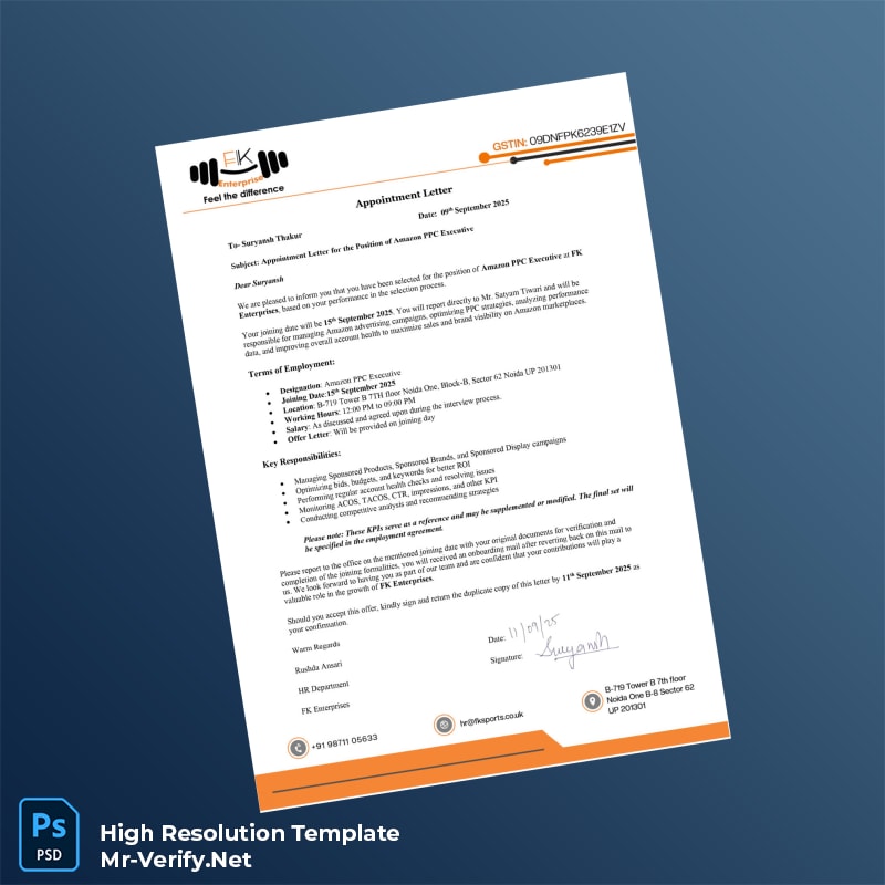 Streamline Your Employment Verification Process with India FK Enterprises Appointment Letter Word and PDF Template