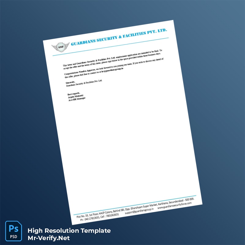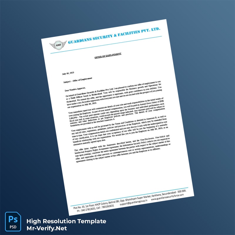 Don’t let delays hold back your professional operations. Acquire the India Guardians Security Facilities Pvt Ltd Employment Verification Letter Word and PDF Template now to enhance efficiency, accuracy, and credibility in all your employment verification requests. Click to download and begin customizing your document immediately for fast, reliable employment proof.