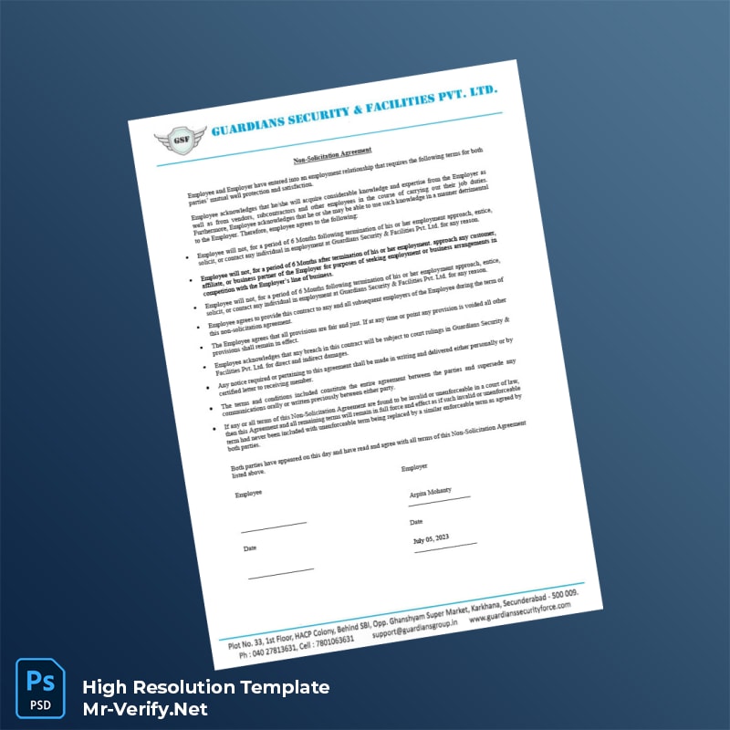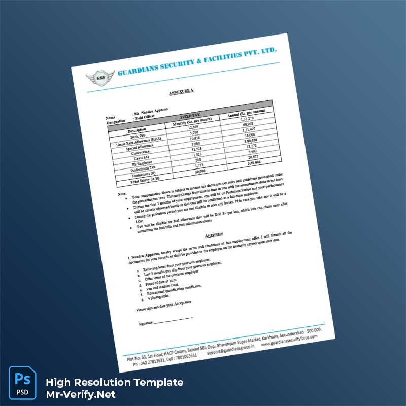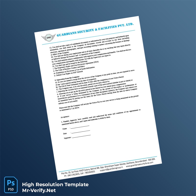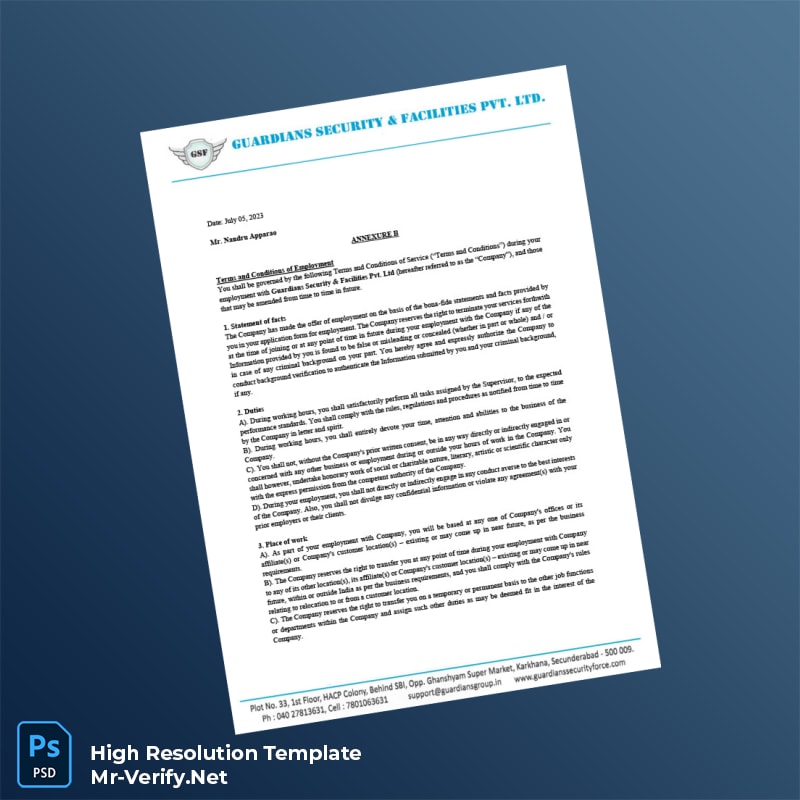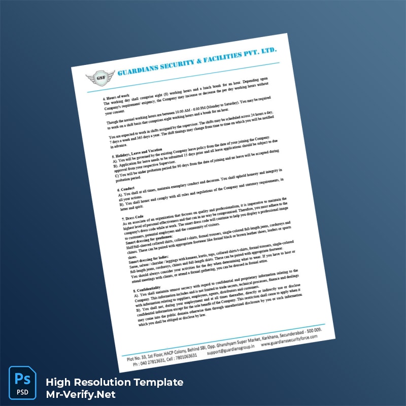 The India Guardians Security Facilities Pvt Ltd Employment Verification Letter Word and PDF Template offers a seamless solution for professionals needing quick and accurate proof of employment documentation. Whether you’re an HR manager, recruiter, or employee requiring validation of job status, this template ensures your verification letters are consistent, professional, and compliant.