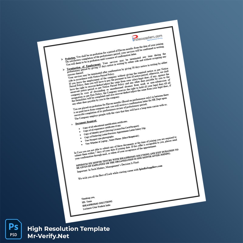 Streamline Your Employment Verification Process with India IDEASPROMO SOLUTIONS Employment Verification Letter Word and PDF Template