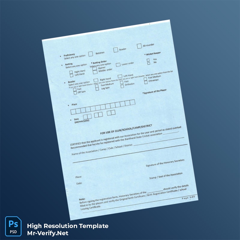 Streamline Your Registration with the India Jharkhand State Cricket Association Template