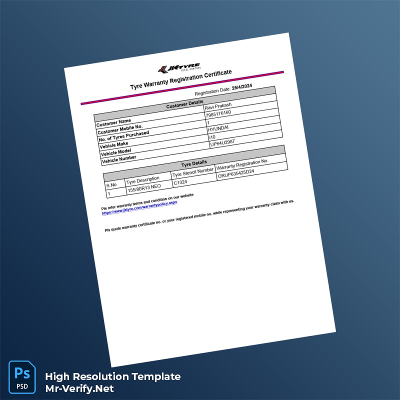 Managing warranty registrations can often be a complex and time-consuming process, especially when documents are lost, stolen, or need urgent replacement. The India JK Tyre Warranty Registration Certificate Word and PDF Template offers a seamless solution for professionals requiring a reliable, editable registration certificate tailored to their precise needs.