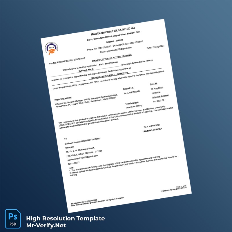 Streamline Your Employment Verification with the India Mahanadi Coalfields Limited Award Letter Template