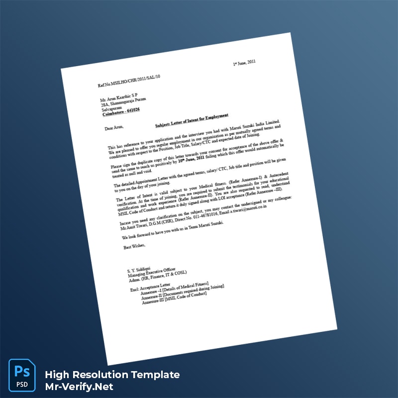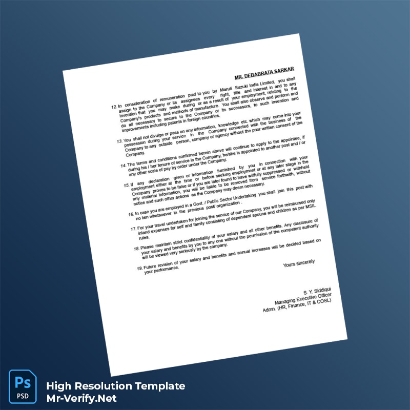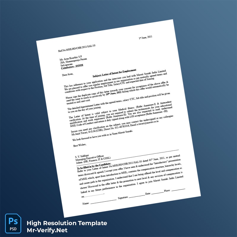 The India Maruti Suzuki India Limited Employment Verification Letter Word and PDF Template offers a seamless solution for professionals needing official proof of employment documents quickly and accurately. Designed to meet industry standards, this editable template empowers HR personnel, administrative staff, and verified employees to generate authentic, clear, and customizable verification letters with ease.