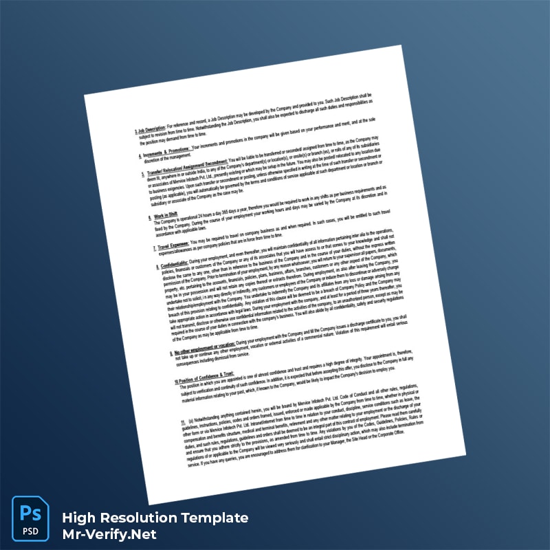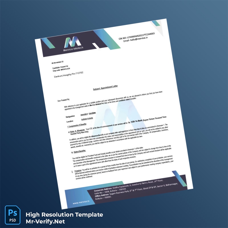 Professionals often face the challenge of quickly and accurately verifying employment details for new hires or current employees. Whether it’s for compliance, onboarding, or record-keeping, having a reliable and easy-to-use employment verification document is essential. The India Mervice Infotech Pvt Ltd Appointment Letter Word and PDF Template offers a practical solution tailored for HR managers, recruiters, and administrative personnel who need an instant and editable document.