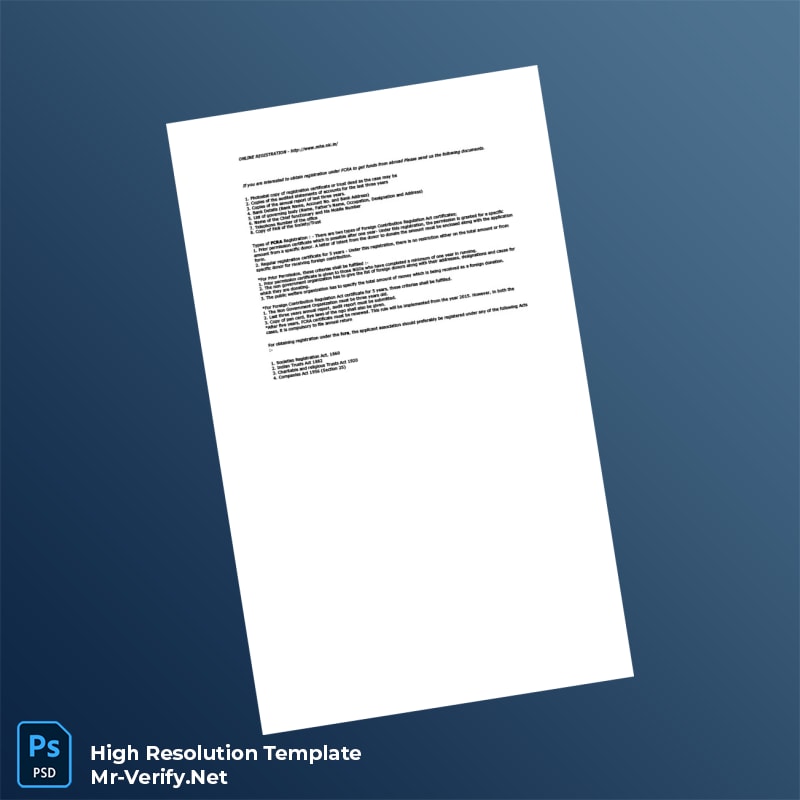 Get the India Ministry of Home Affairs FCRA Registration Certificate Word and PDF Template for fast, editable, and professional registration documentation.