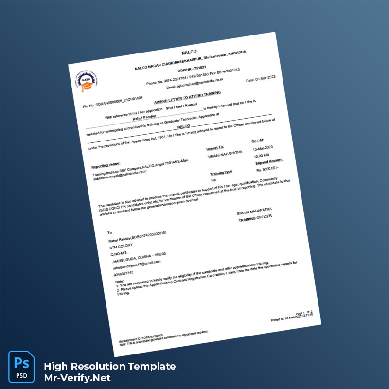 The India NALCO template boasts several competitive strengths: it supports high-resolution output suitable for printing or digital submission, includes all necessary fonts for professional appearance, and allows instant download once purchased, ensuring no wait time. These features guarantee a polished and credible certificate of employment template that withstands scrutiny from employers, banks, or government agencies.