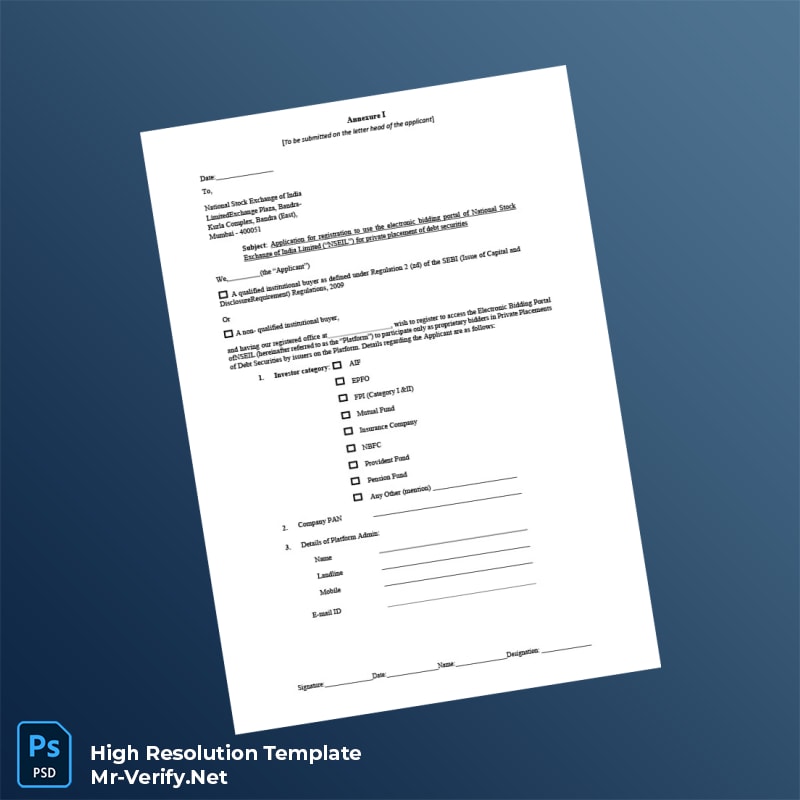 The India National Stock Exchange Investor Registration Checklist Word and PDF Template offers a seamless solution for professionals seeking to efficiently manage their investor documentation. Designed with precision, this editable registration certificate template ensures all critical details are accurately handled, providing a reliable and professional format that simplifies compliance and record-keeping.
