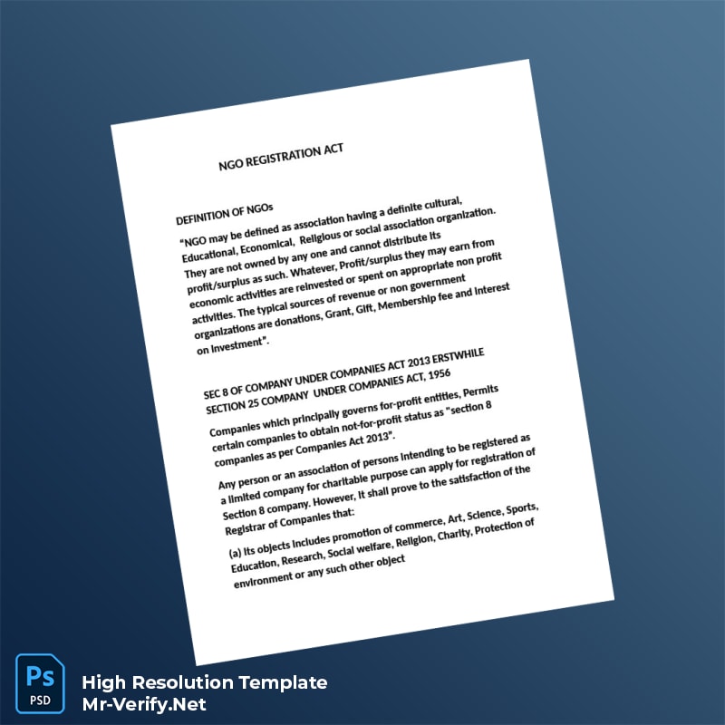 Streamline Your NGO Registration with the India NGO Registration Act Document Word and PDF Template