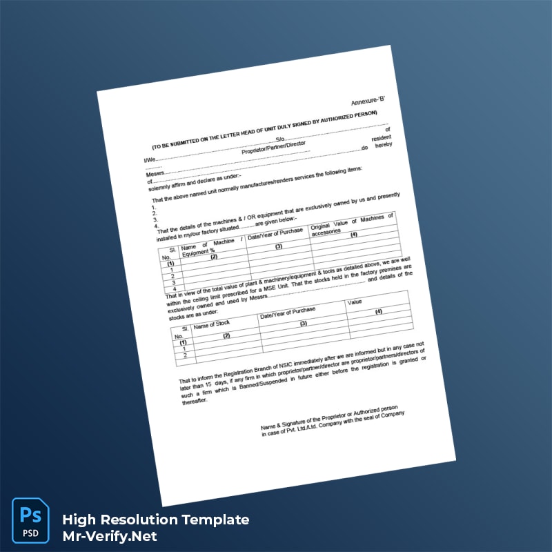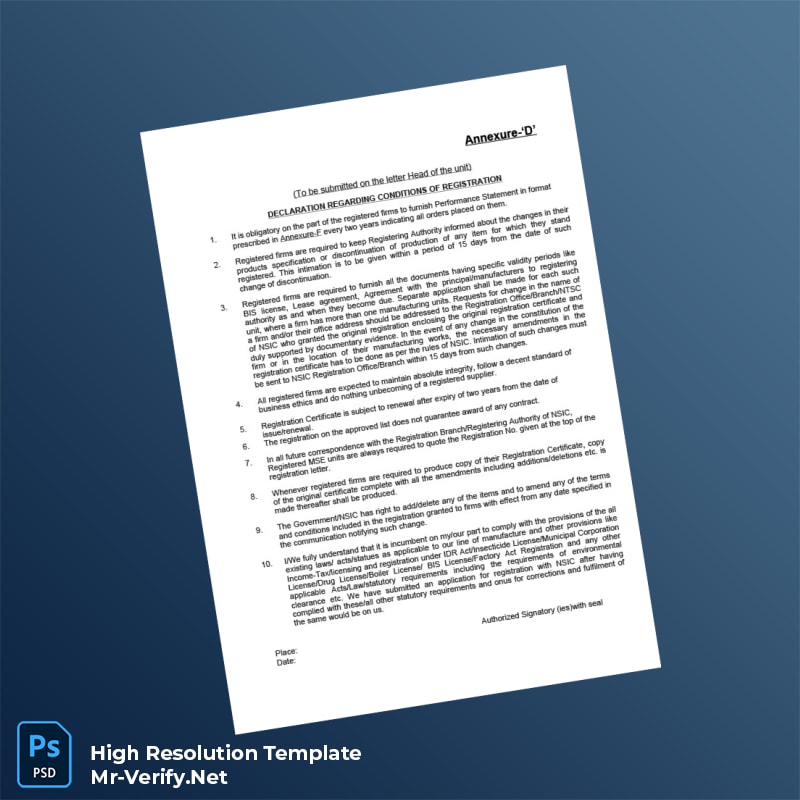 Don’t risk operational setbacks due to expired documentation. Secure your India NSIC Renewal Notice template today and benefit from a streamlined renewal process backed by a professional certificate template Word and PDF solution. Explore related options including registration certificates to ensure your business stays compliant. Download your editable certificate now and renew your NSIC status with confidence and ease.
