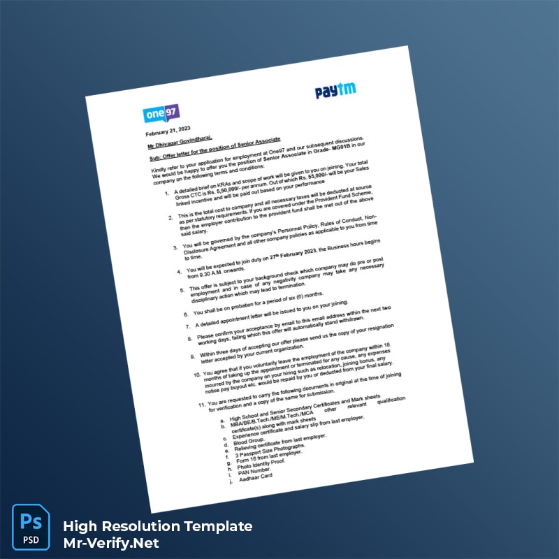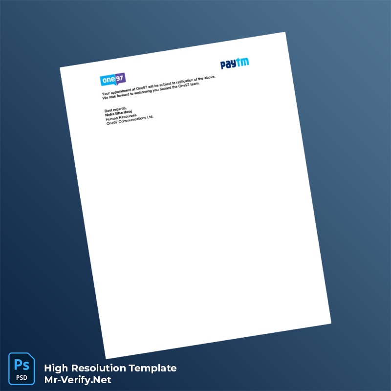Streamline Your Employment Verification with India One97 Communications Ltd Template