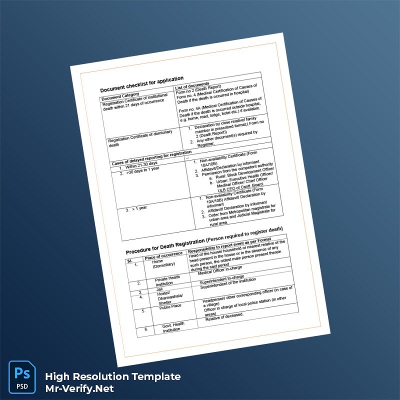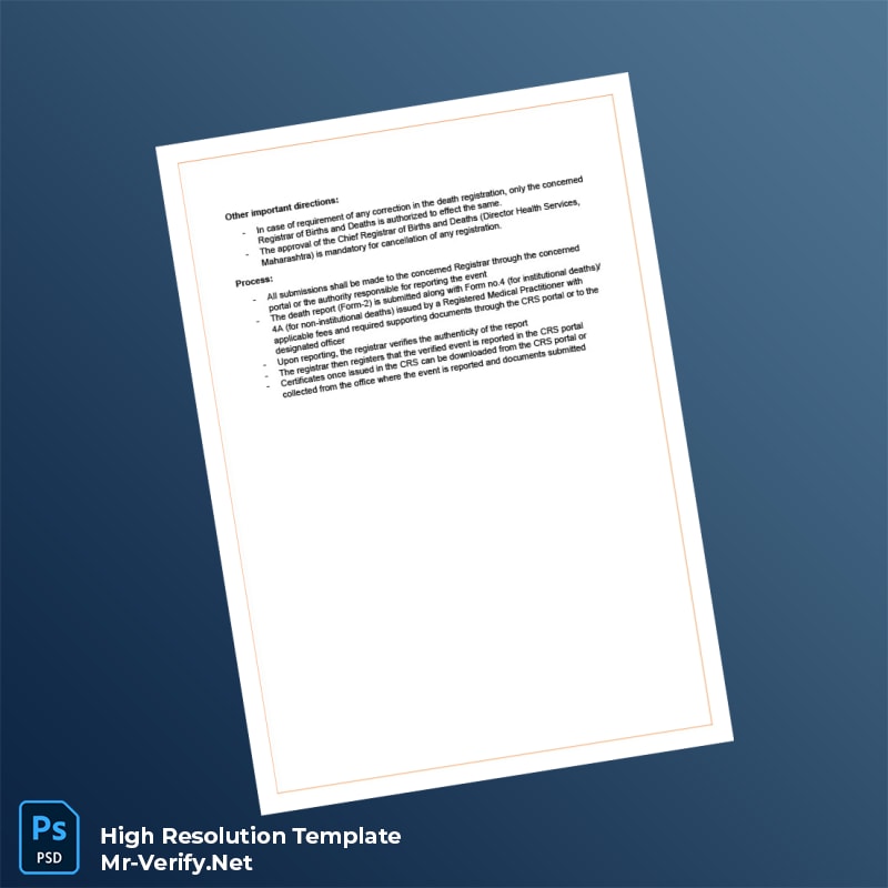 Editable India Public Health Department Death Registration Certificate Word and Pdf Template 4 page