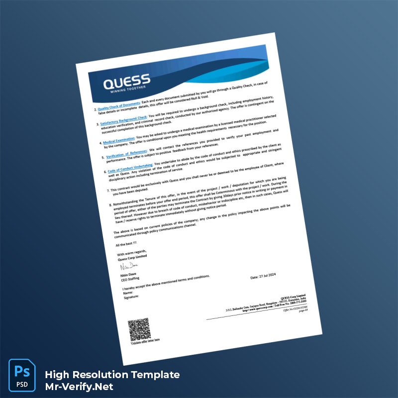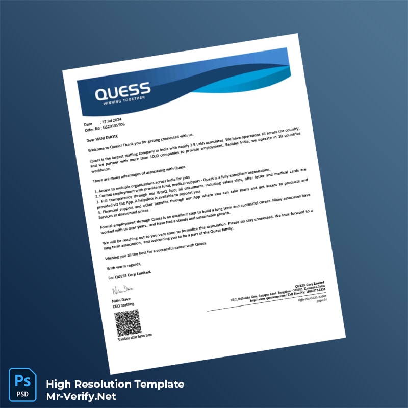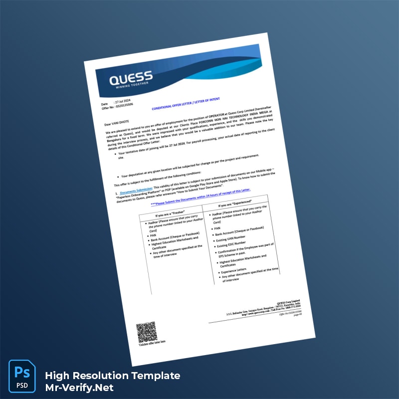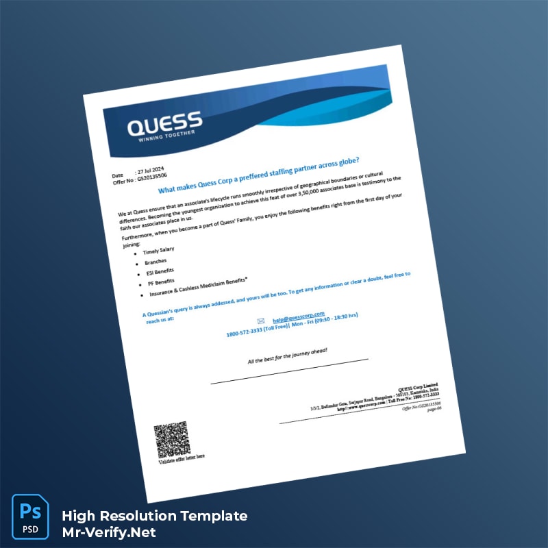 The India Quess Corporation Employment Verification Letter Word and PDF Template offers a comprehensive and editable solution for professionals needing a reliable proof of employment document. Whether you are HR personnel handling multiple verification requests or an employee seeking an official certificate of employment, this well-crafted template simplifies the process significantly.