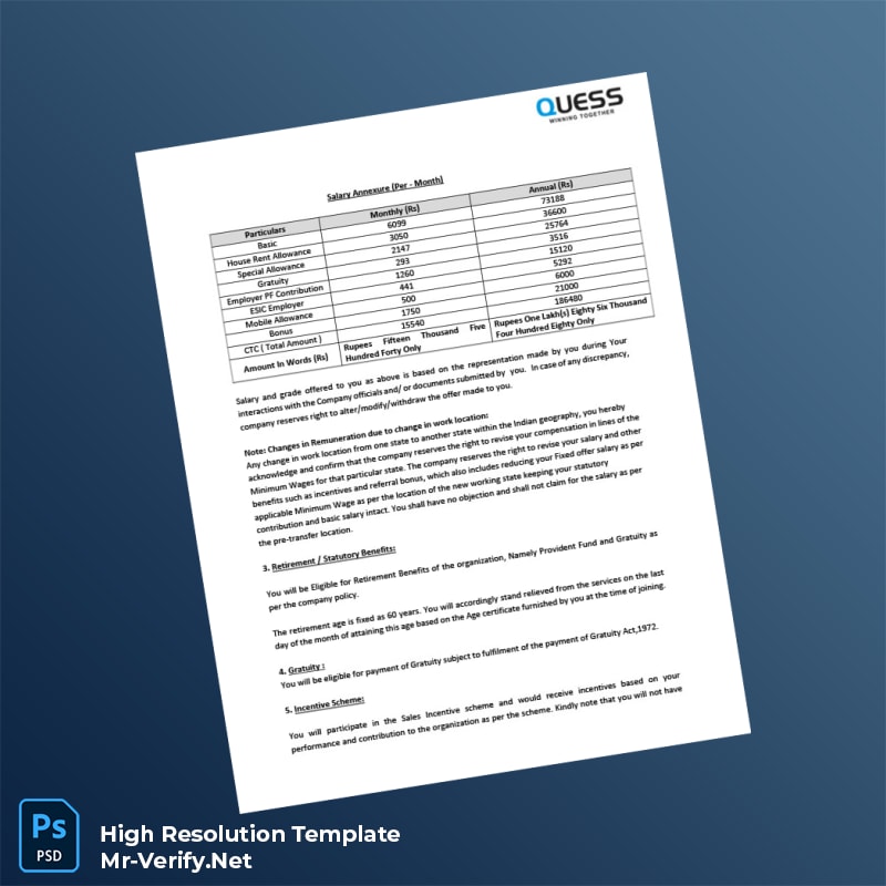 India Quess Corporation Salary Certificate Word and PDF Template: Your Professional Employment Verification Solution