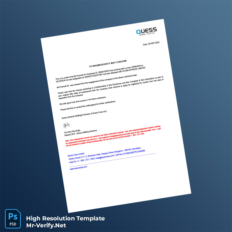 Streamline Your Employment Verification Process with India Quess General Staffing Letter Template