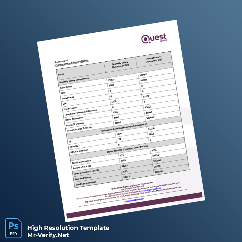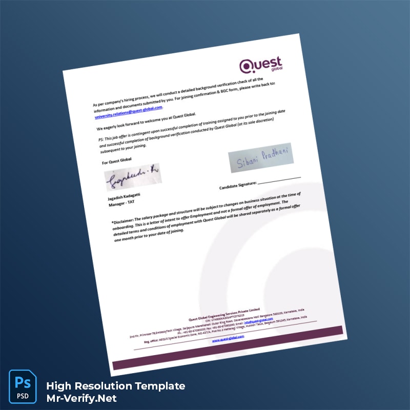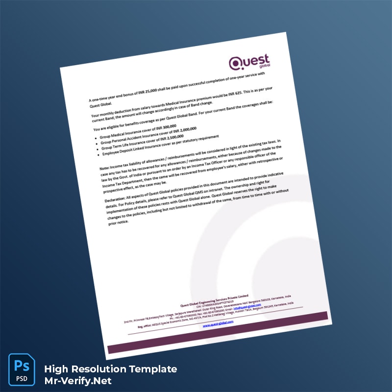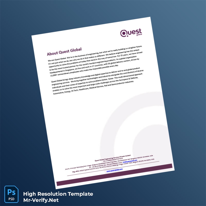 India Quest Global Employment Verification Letter Word and PDF Template offers easy, professional proof of employment letters for quick and reliable verification.
