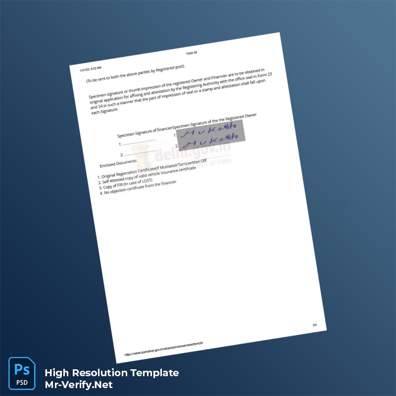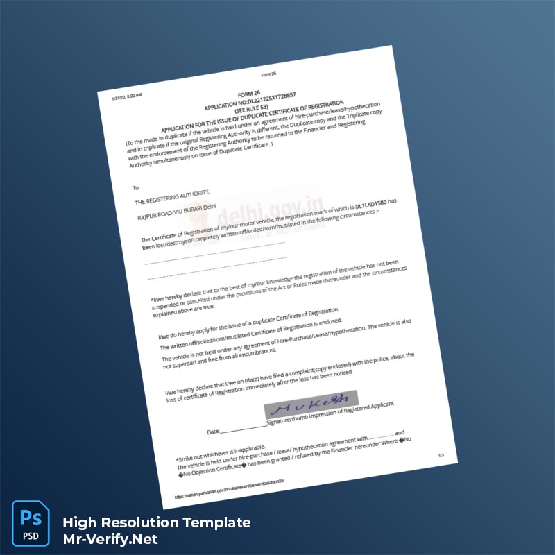 Streamline Your Vehicle Registration Process with Our India Rajpur Road Motor Vehicle Registration Certificate Template