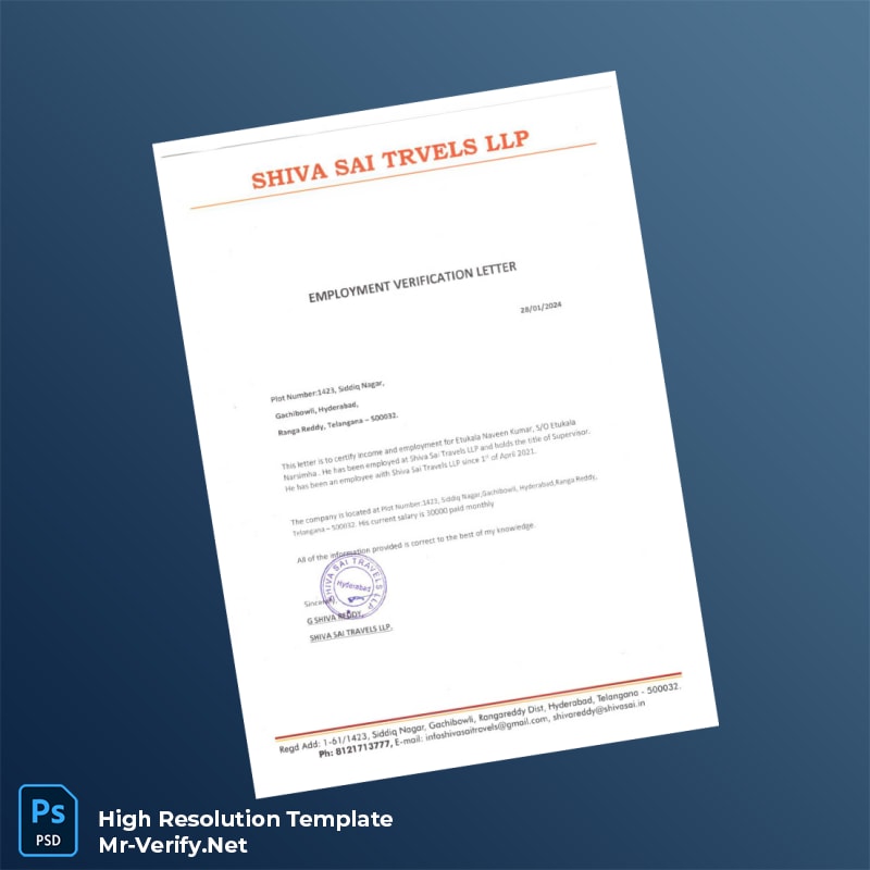 Invest in the India Shiva Sai Travels LLP Employment Verification Letter Word and PDF Template now to gain instant, reliable access to a customizable, professional employment verification tool. Streamline your documentation process and present the proof you need with confidence and professionalism.