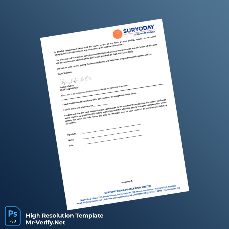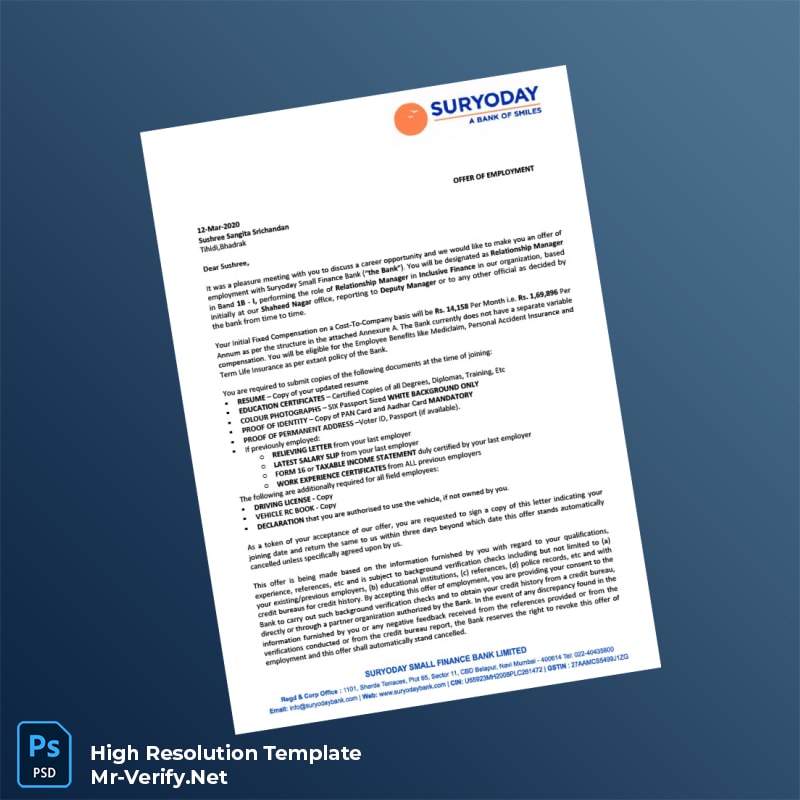 With this ready-to-use India Suryoday Small Finance Bank Employment Verification Letter Word and PDF Template, you gain a trusted asset that enhances your administrative efficiency and professional communication. Don’t let employment verification become a bottleneck; equip your workflow with this versatile and user-friendly template and experience smoother, faster responses to verification requests.
