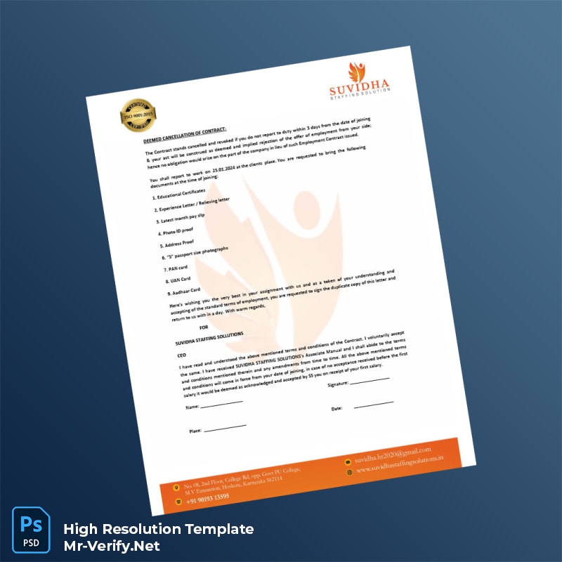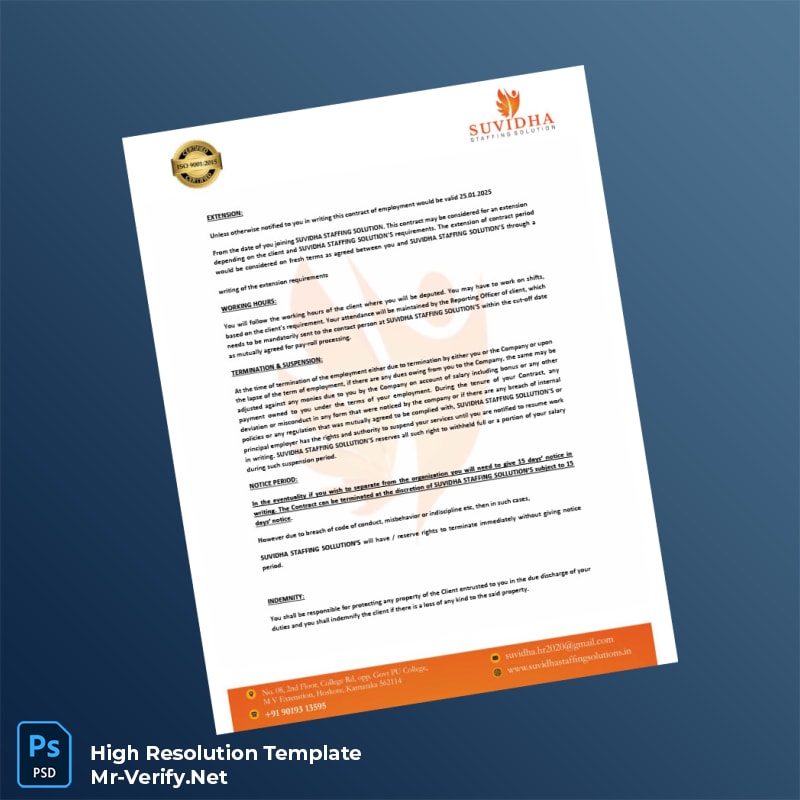 The India Suvidha Employment Verification Letter Word and PDF Template is expertly designed to facilitate quick, accurate, and professional employment confirmation for HR professionals, recruiters, and employees alike. This editable template empowers users to create customized proof of employment letters effortlessly, ensuring seamless communication and compliance with company and regulatory standards.