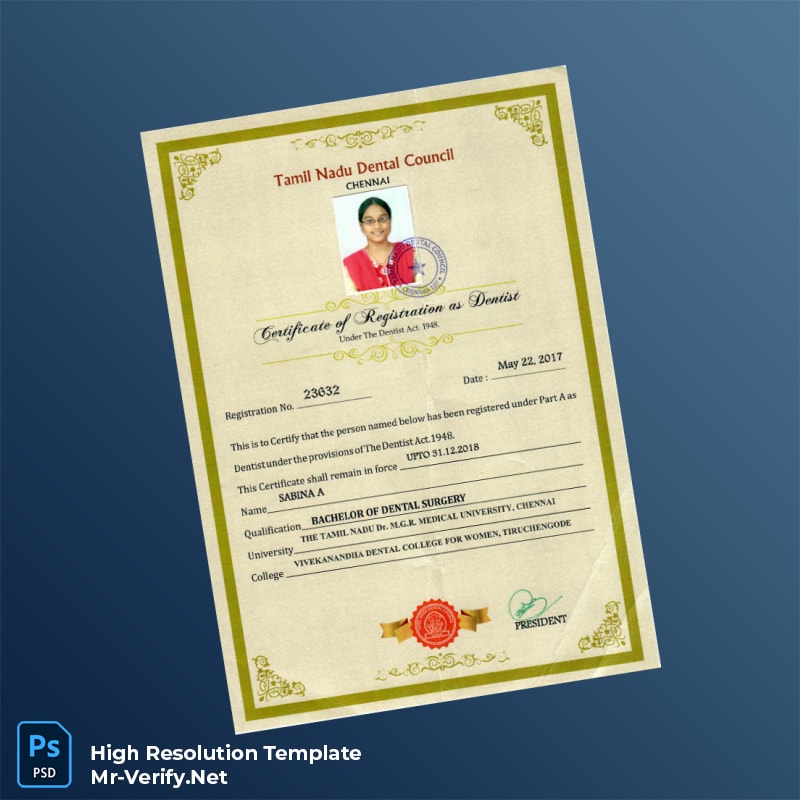 Streamline Your Dental Council Registration with Our India Tamil Nadu Dental Council Registration Certificate Word and PDF Template
