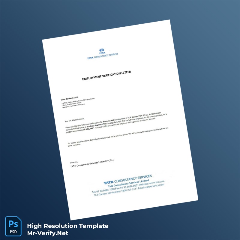 India TATA Consultancy Services Employment Verification Letter Word and PDF Template