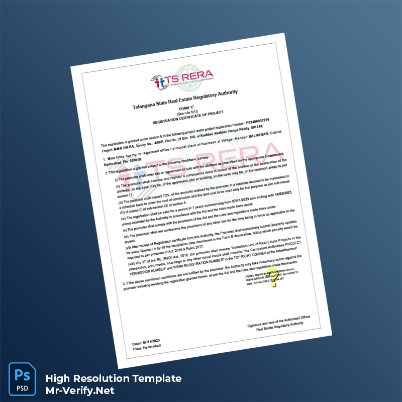 Streamline Your Business Compliance with the India Telangana Real Estate Regulatory Authority Registration Certificate Word and PDF Template