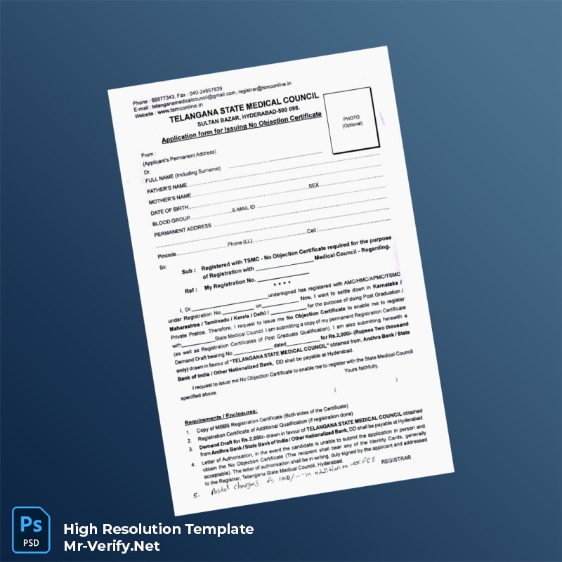 Efficiently managing official documentation can be a daunting task for healthcare professionals in Telangana. The India Telangana State Medical Council No Objection Certificate Application Form Word and PDF Template is designed to simplify this essential process, offering a fully editable and customizable template that suits your professional needs.