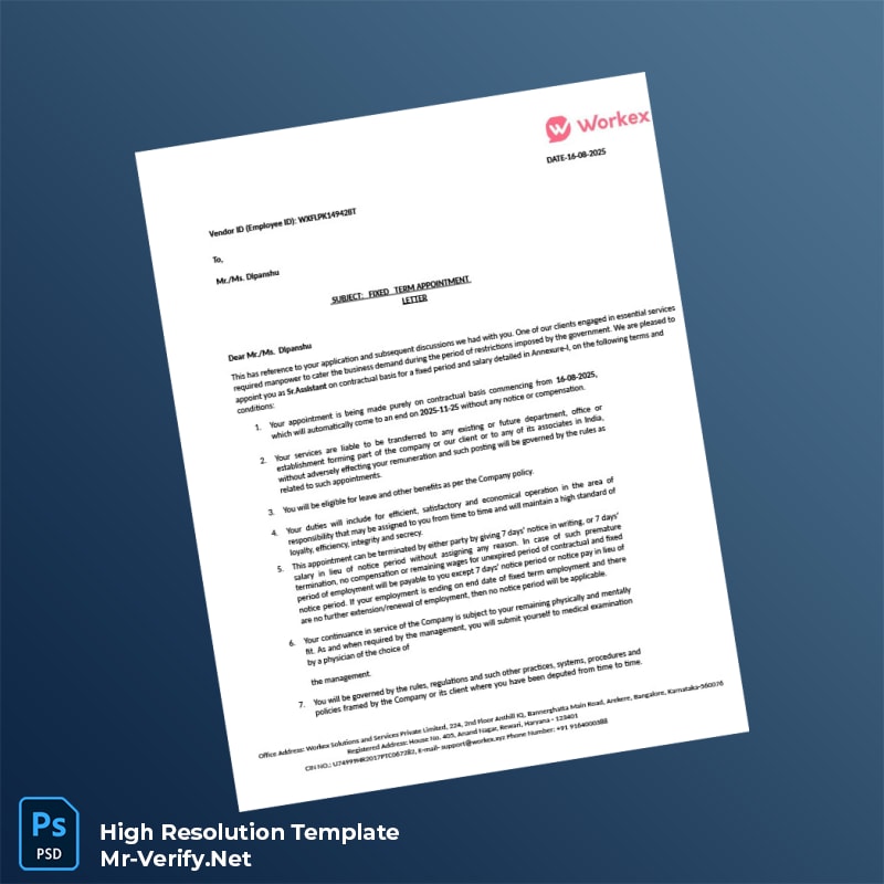 Ensuring accurate and professional proof of employment documentation is essential for HR professionals, recruiters, and employees alike. The India Workex Solutions Employment Verification Letter Word and PDF Template offers a seamless solution tailored to meet global employment documentation needs with precision and ease.