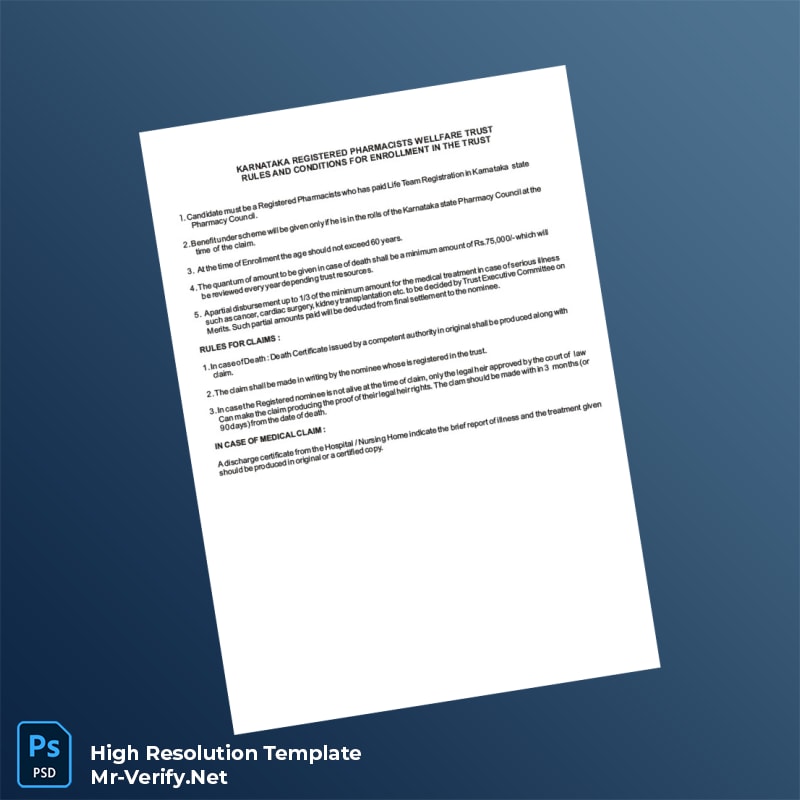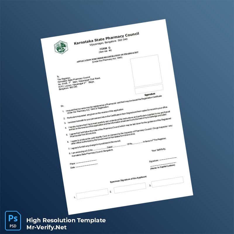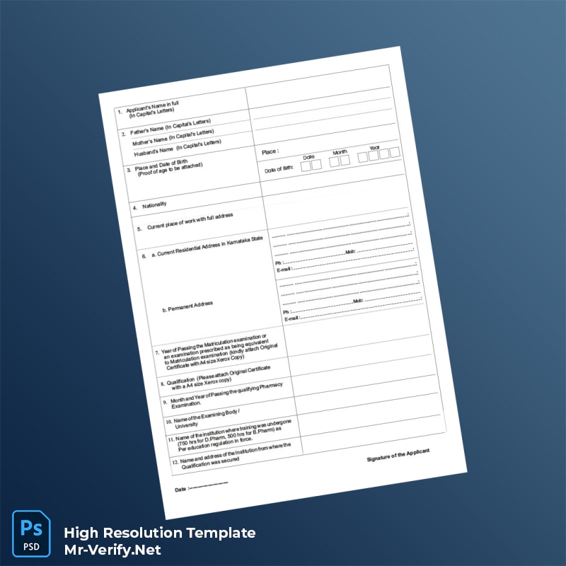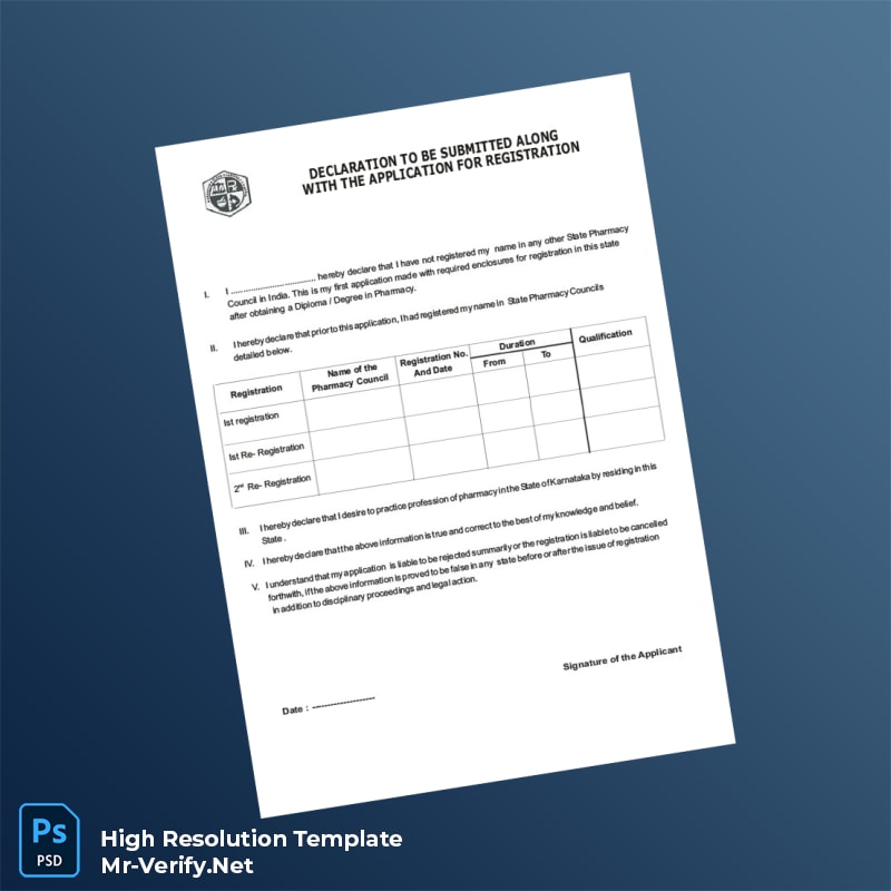 Karnataka State Pharmacy Council Registration Certificate Word and PDF Template