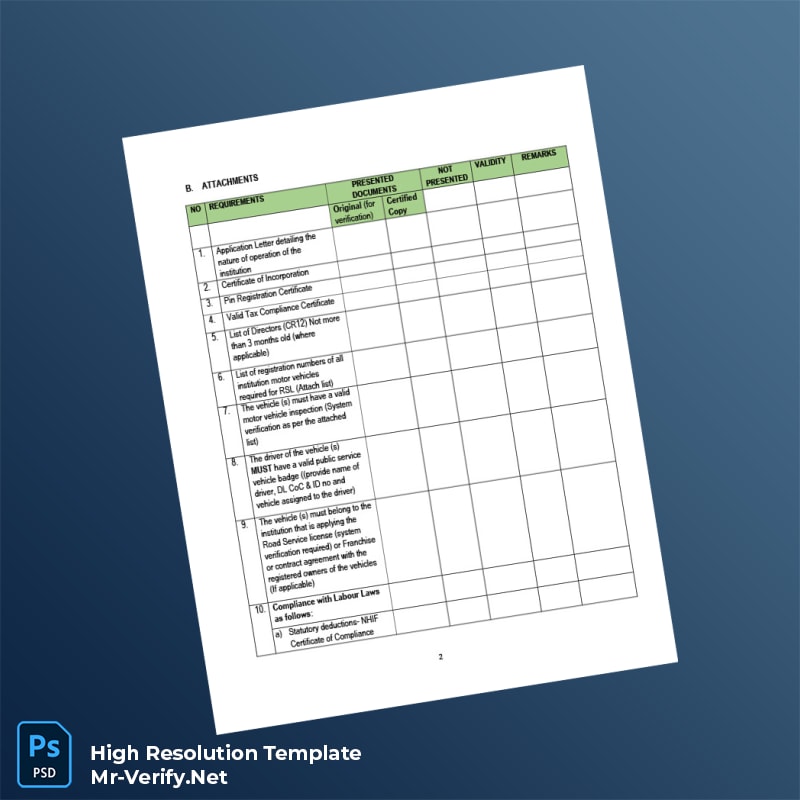 Get the Kenya NTSA Road Service License Application Form Word and PDF Template for fast, professional, and editable license applications and registration.