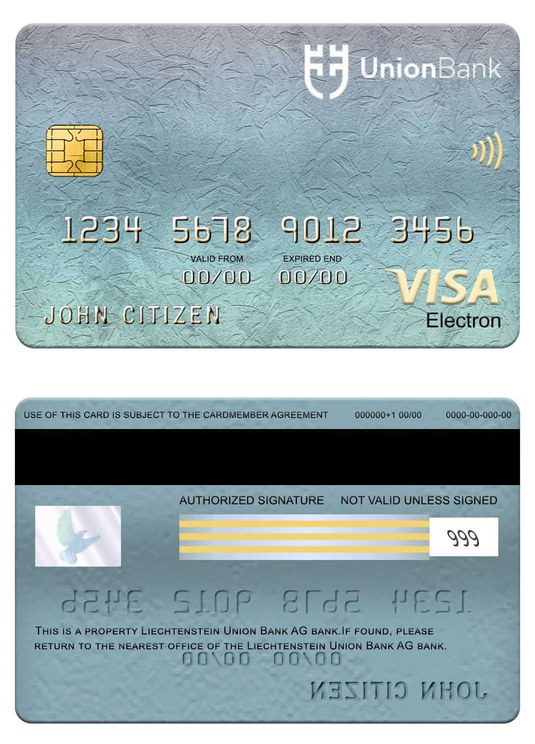 Do you want to use a fillable visa electron card that truly reflects your authority and is realistic? Look no further! Our customizable Liechtenstein Union bank visa electron card templates in PSD format are the perfect solution.