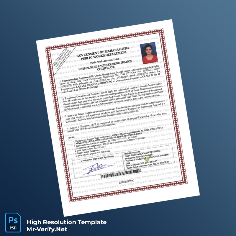 Effortlessly Manage Your Registration with the Maharashtra Public Works Department Unemployed Engineer Registration Certificate Template